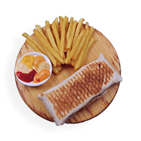 Garni de frites et de sauce fromagère + 1 Viande au choix + 1 Sauce au choix + Frites.